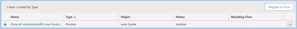 Sometimes you open Setup → Migrate to Flow and your Process Builder is missing (or you see 0 eligible items). This usually means the PB is read-only / managed package, or not eligible for automatic conversion.