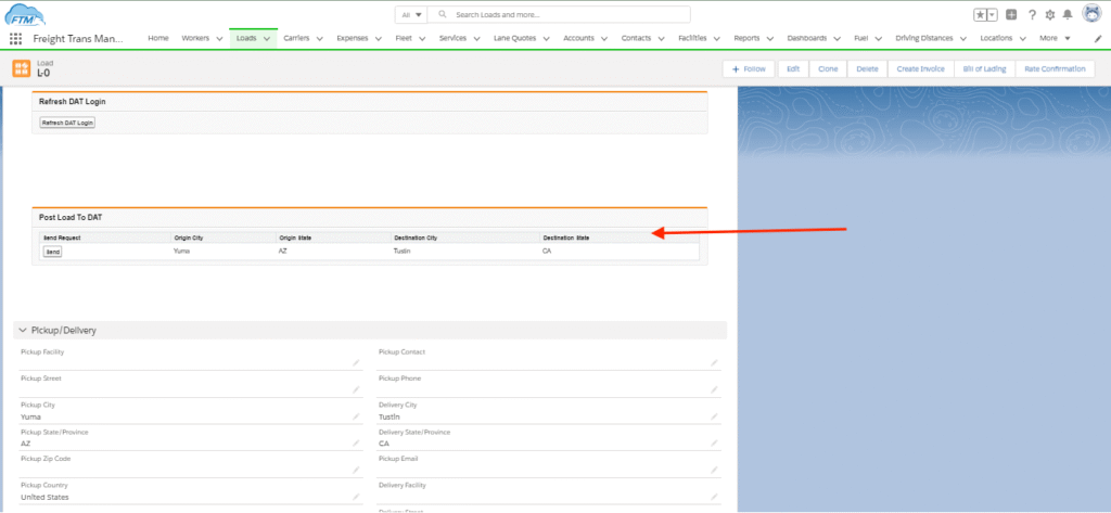 - Salesforce does not sync status back from DAT, if you update or remove the load, do it manually in DAT’s portal.