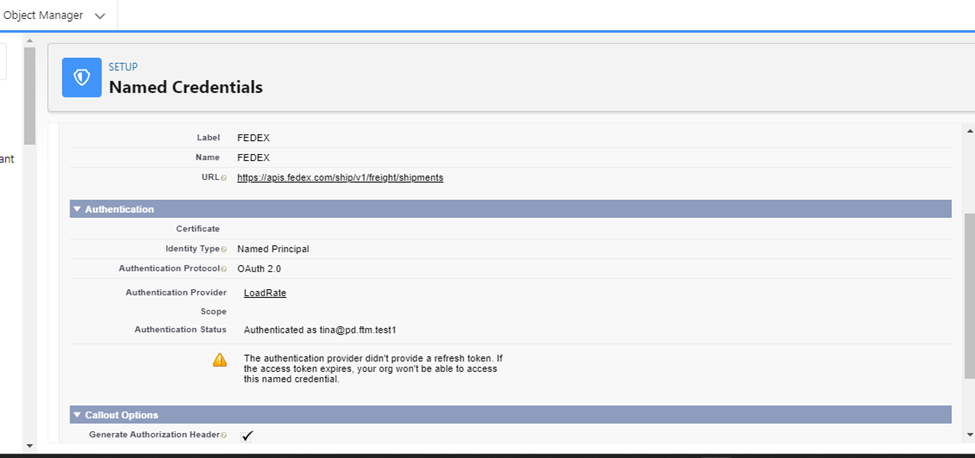 This enables secure token-based authentication between FTM and FedEx.
